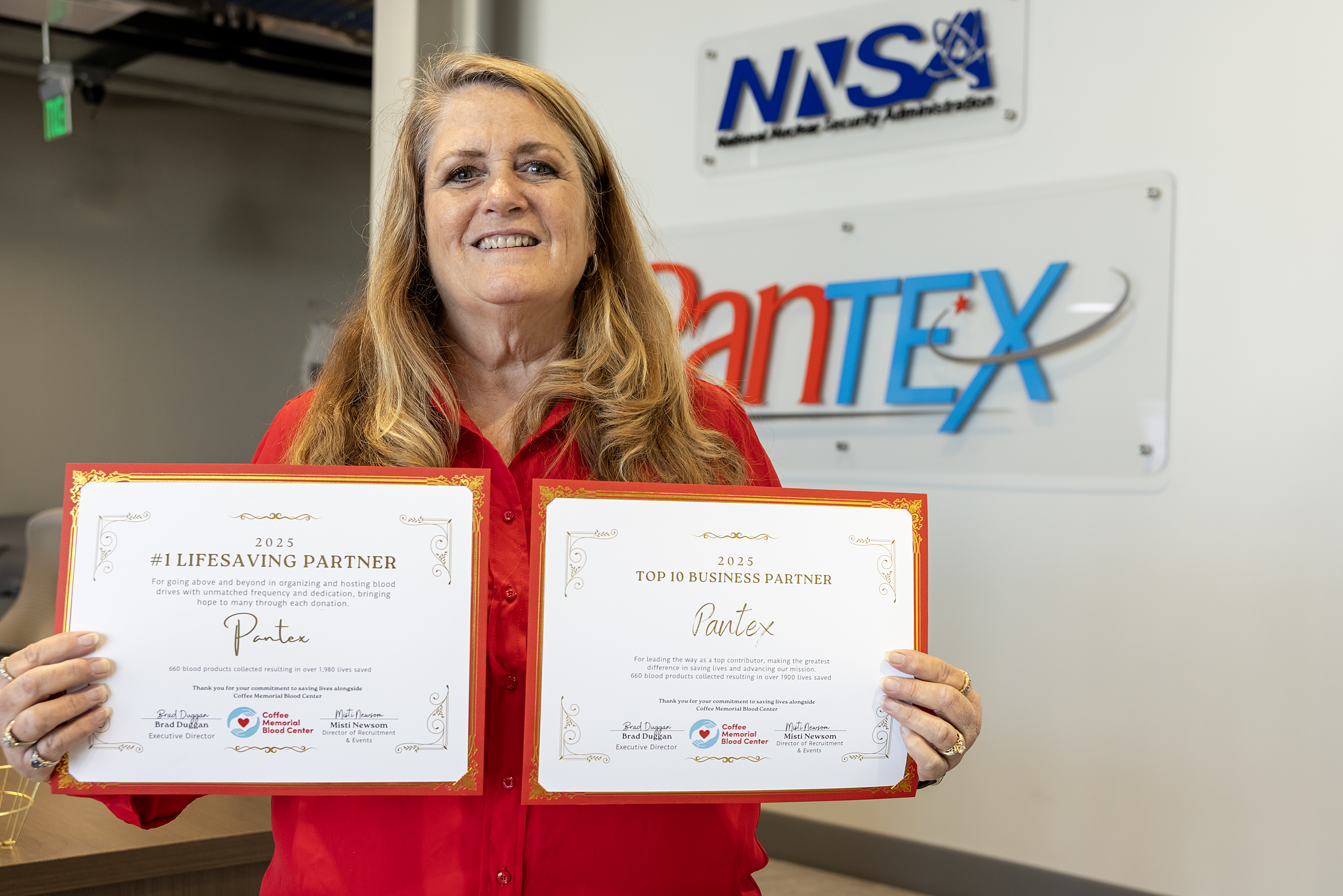 The awards received from Coffee Memorial Blood Center are a testament to the unwavering support and dedication of the Pantex community.